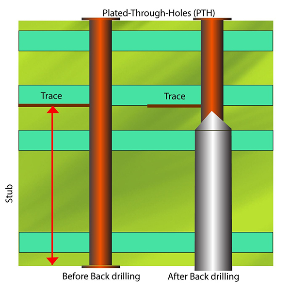 أثناء تصنيع لوحات الدوائر المطبوعة، يتم استخدام تقنية الحفر الميكانيكي للحفر من جانب واحد من اللوحة، وإزالة النحاس الموصّل غير المرغوب فيه بين طبقات معينة داخل المسار. تحتفظ هذه العملية بالنحاس الضروري للاتصال فقط. وهي تقضي بشكل فعال على أعمدة النحاس العمياء، مما يمنع انعكاس الإشارة وفقدانها أثناء نقل الإشارات عالية السرعة.